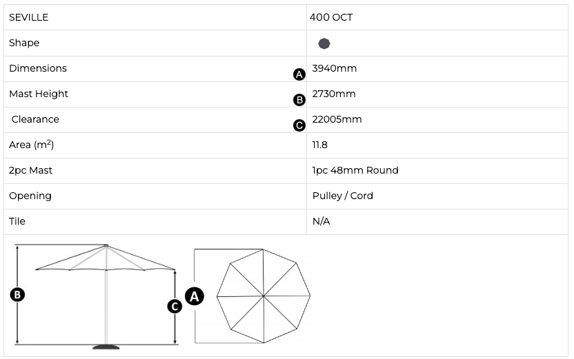 The Seville is part of our Market umbrellas, manufactured in high quality hardwood. The Courtyard range features a pulley / cord opening and silver trim components to give a superb finish touch.